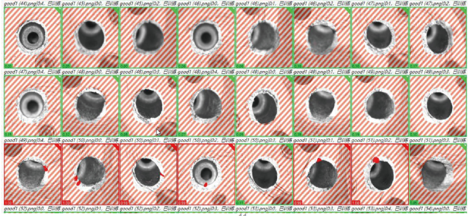 采用一個相機(jī)拍攝頂端孔邊緣區(qū)域及表面區(qū)域、檢測劃傷、毛刺等缺陷,通過AI處理