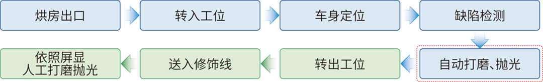 貝特威自研業(yè)界領(lǐng)先的漆面檢測(cè)、打磨、拋光一體化系統(tǒng),為主機(jī)廠提供視覺(jué)全自動(dòng)涂裝檢測(cè)與修復(fù)解決方案??煽朔鹘y(tǒng)人工方式的漏檢風(fēng)險(xiǎn),實(shí)現(xiàn)生產(chǎn)過(guò)程數(shù)據(jù)的數(shù)字化可追溯管理,可及時(shí)優(yōu)化涂裝工藝,有效提升汽車外觀質(zhì)量。對(duì)傳統(tǒng)相位偏折技術(shù)進(jìn)行改進(jìn)提升,基于自研的調(diào)制光強(qiáng)解碼技術(shù)(MID)和AI算法,實(shí)現(xiàn)汽車漆面質(zhì)量高精準(zhǔn)、高可靠、高柔性的實(shí)時(shí)檢測(cè)、分類與定位?;跈C(jī)器人架構(gòu),柔性精準(zhǔn)匹配汽車構(gòu)型,針對(duì)不同車型只需對(duì)機(jī)器人軌跡進(jìn)行重新規(guī)劃,即插即用,可無(wú)縫銜接各生產(chǎn)線。